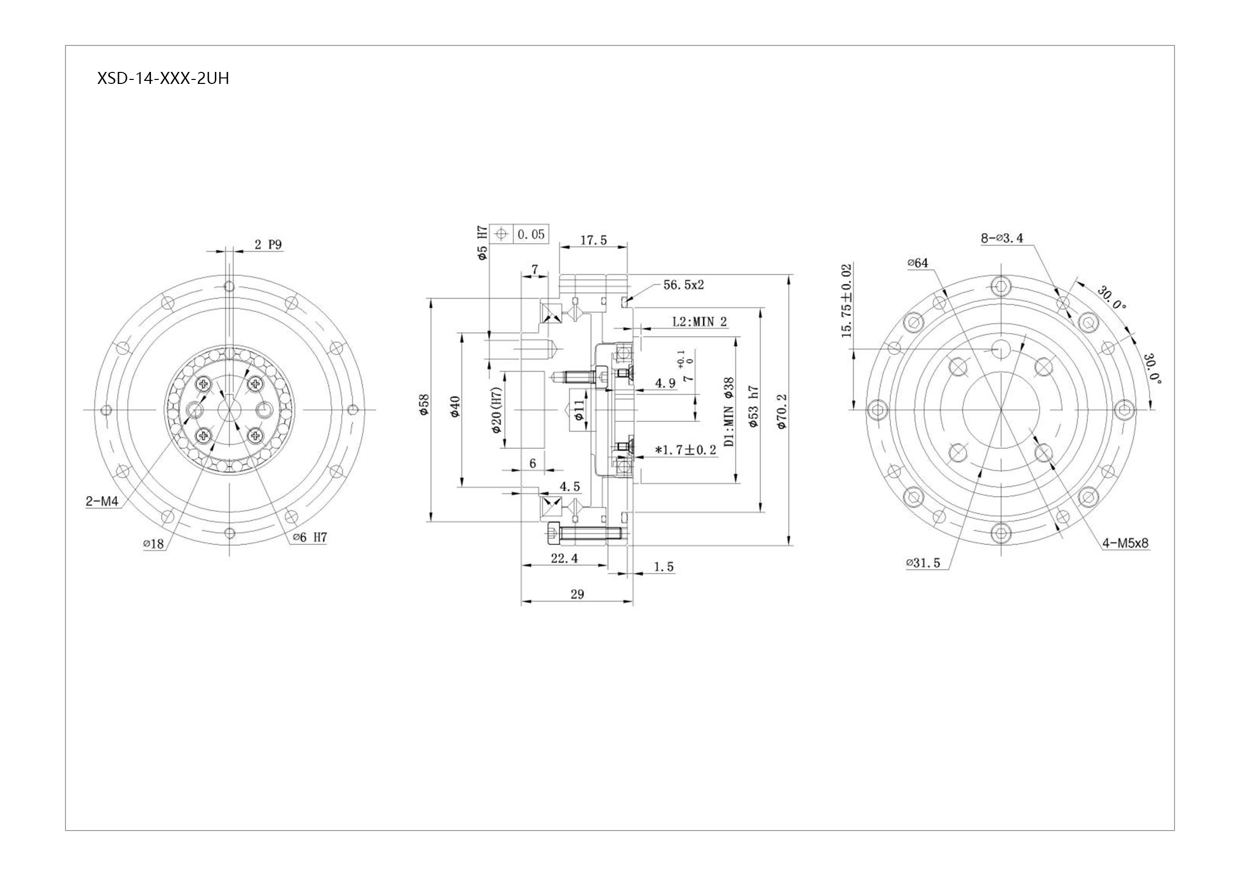 Harmonic Drive XSD-2UH Series is more compact than XSF Series/Gearheads type (2UH) which has the same torque capacity.